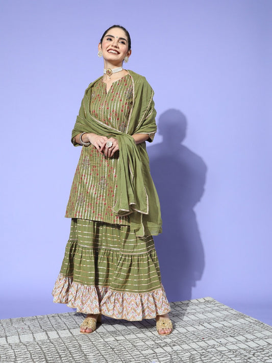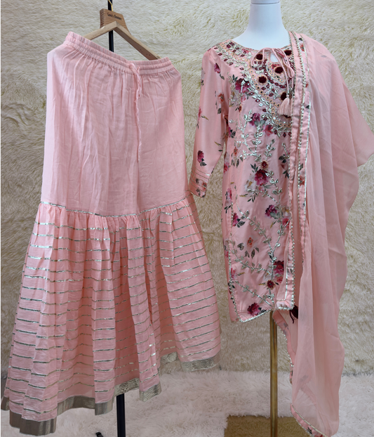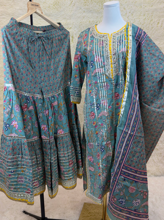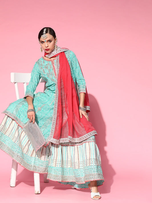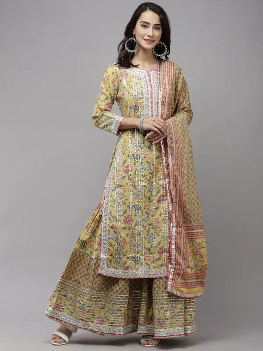 Women's Rayon Navy Blue Embroidered Anarkali Kurta Sharara Dupatta Set