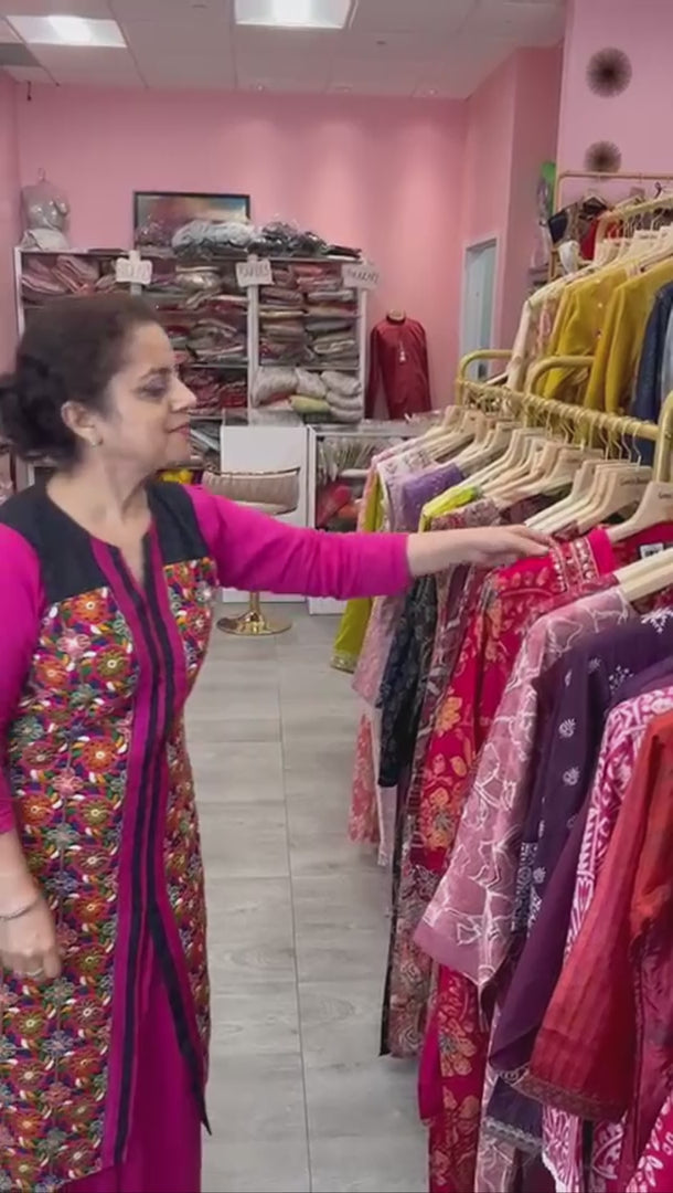 Crafted from soft muslin fabric, this suit features a vibrant floral print and a beautifully embroidered neckline. The outfit is complemented by a matching floral print dupatta, making it a perfect choice for festive gatherings and special occasions.