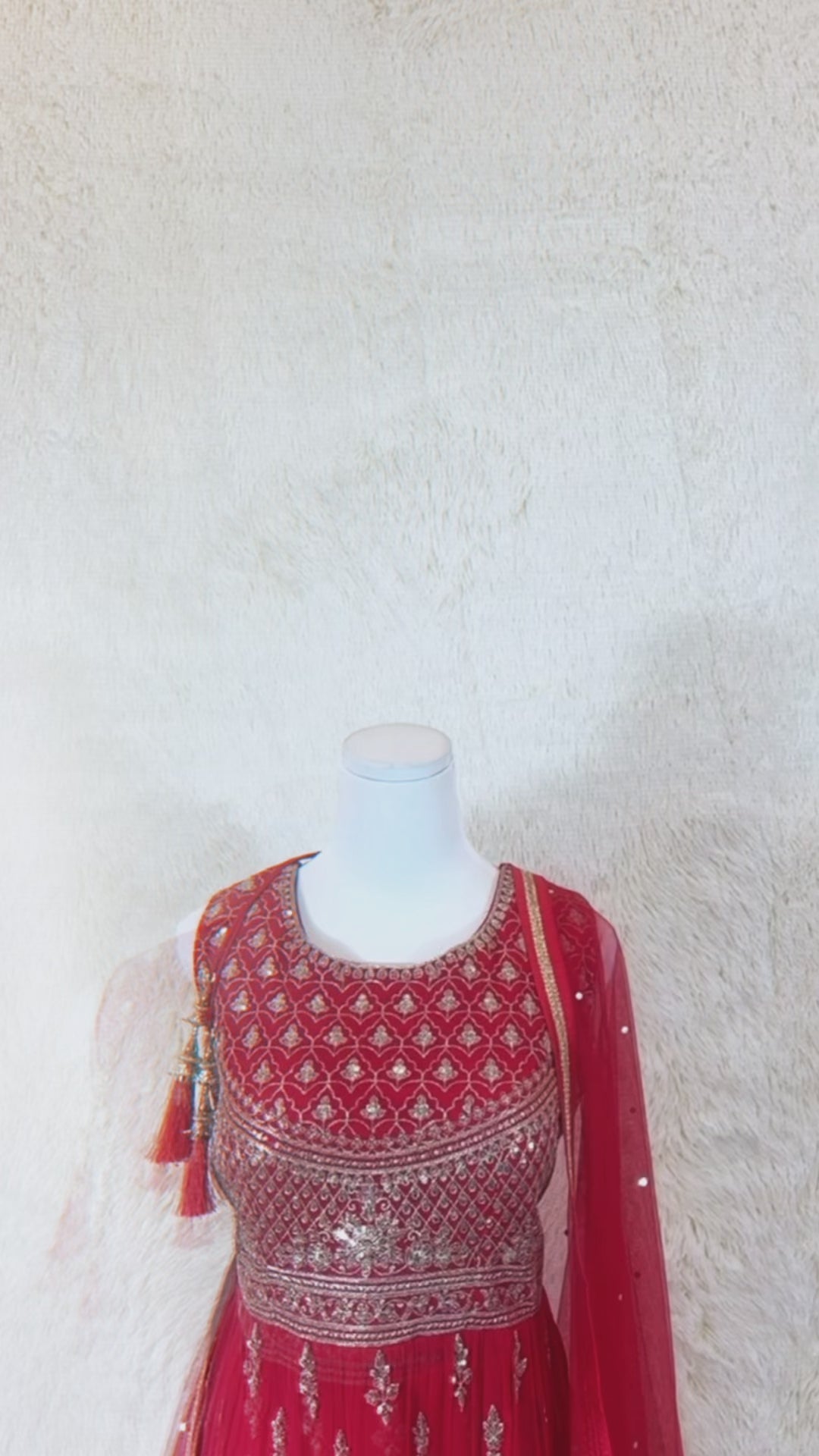 Vibrant Fuchsia Red Sharara Suit, crafted from delicate georgette fabric.