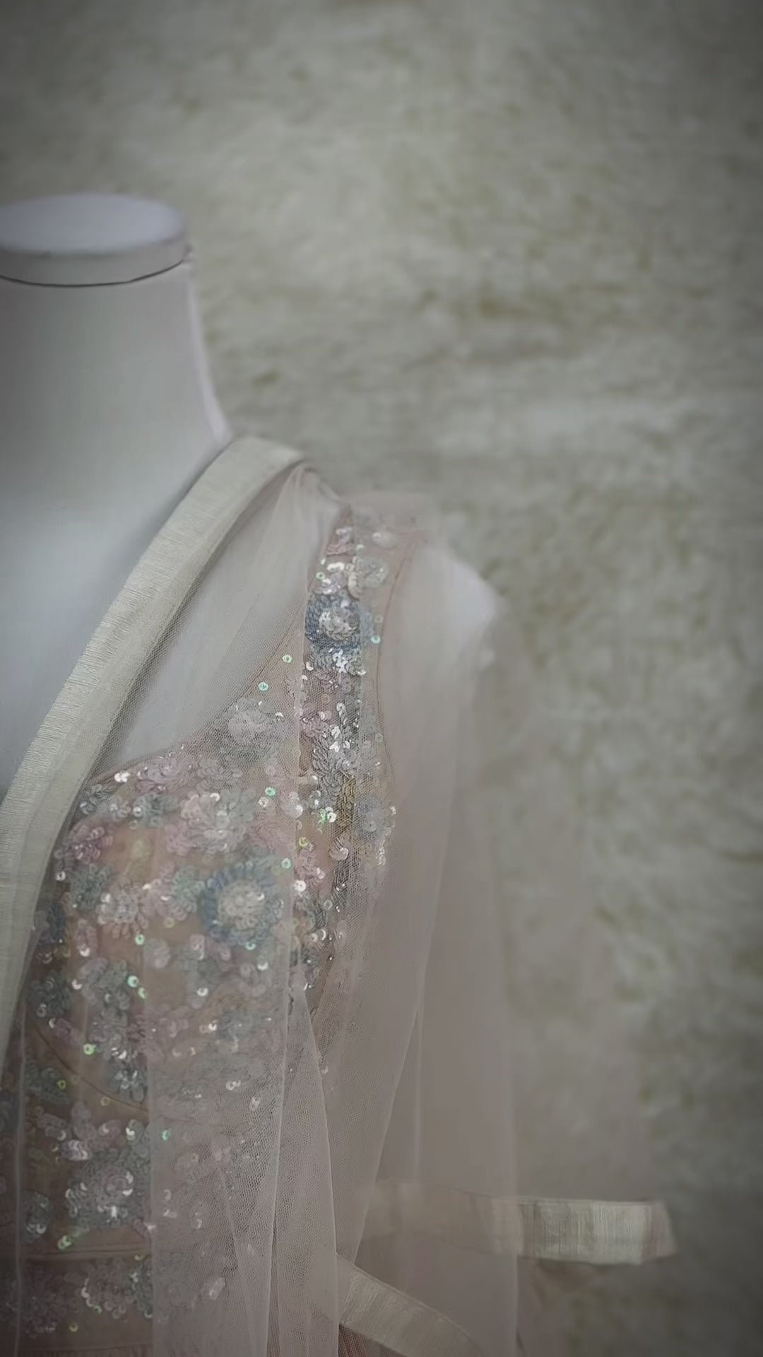 The blouse is embellished with shimmering sequin work, adding a touch of elegance and sparkle.