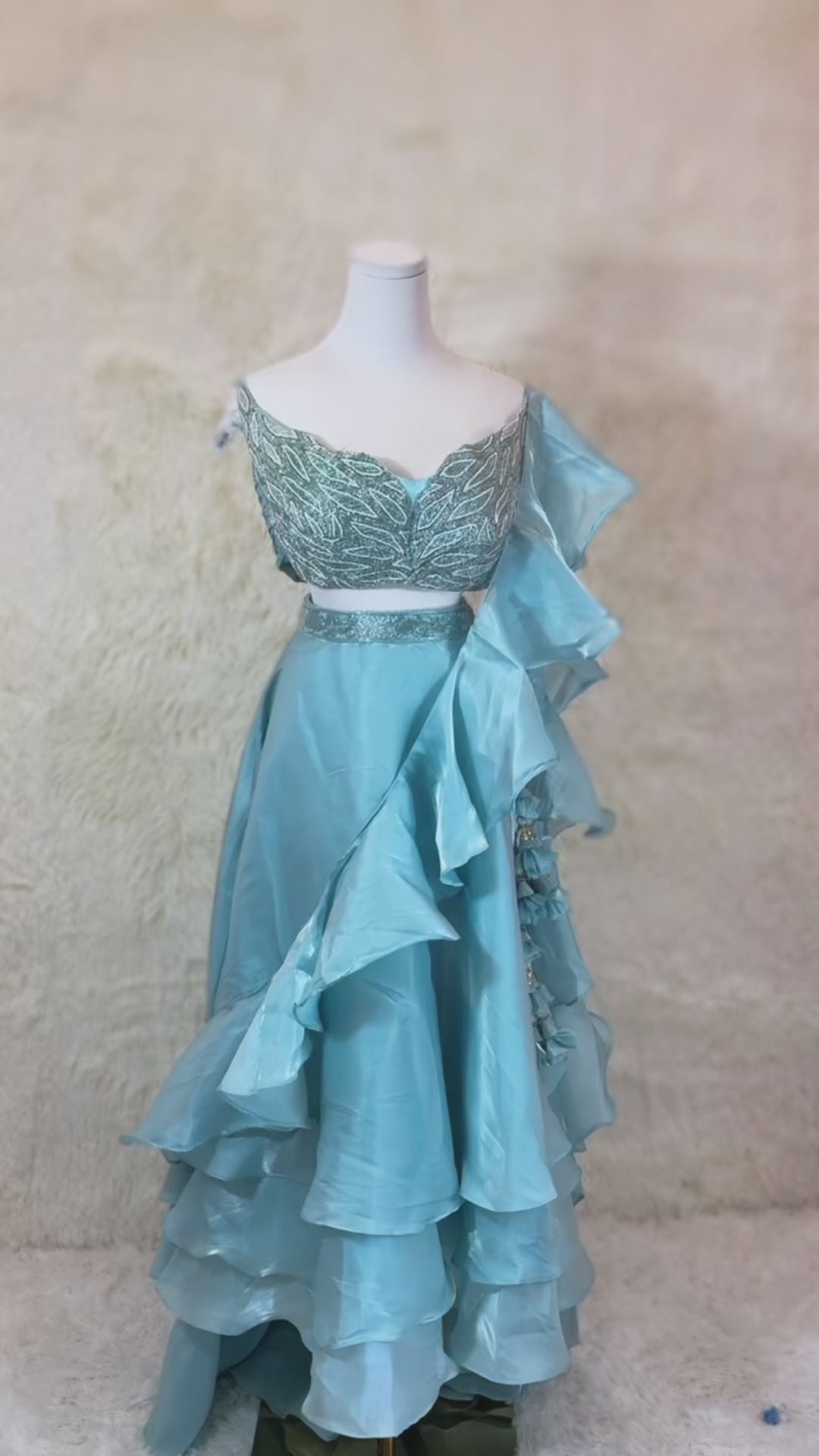 Sky Blue Lehenga Dress, crafted from luxurious satin fabric.